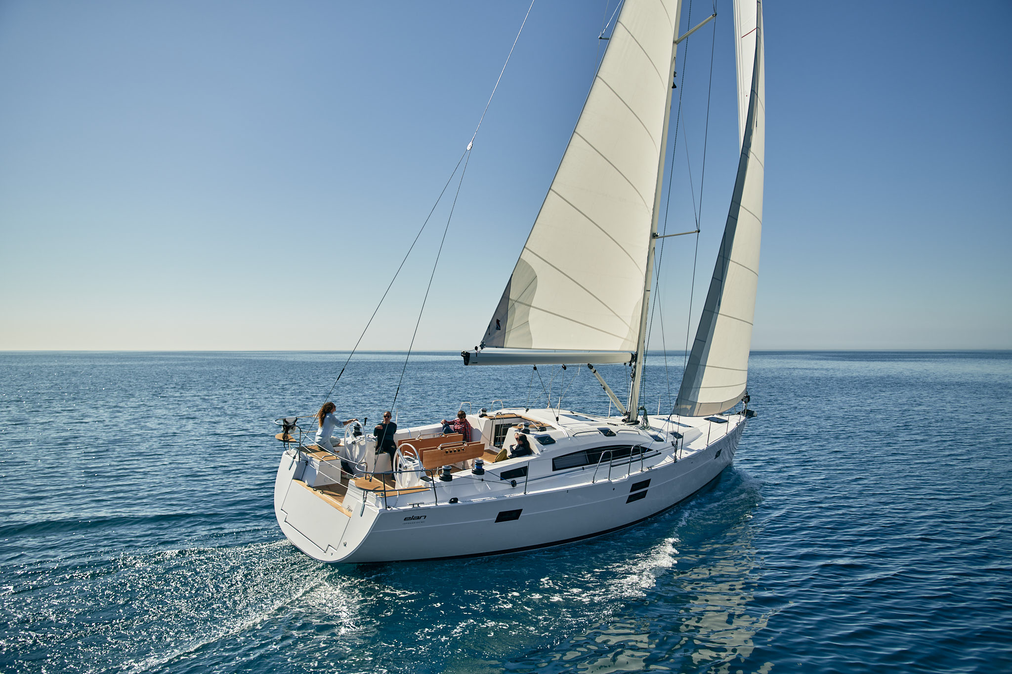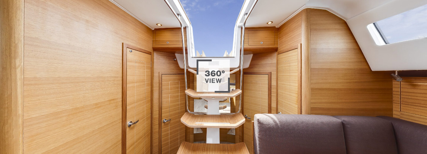 The Elan Impression 50.1 offers abundant volume down below with plenty of natural light, thanks to all of the hull and deck windows. Unique to the Impression 50.1 within the cruiser class of this size is the innovative inverted deck saloon, which ensures the optimal use of the maximum width of the yacht without compromising the cabin and galley areas.