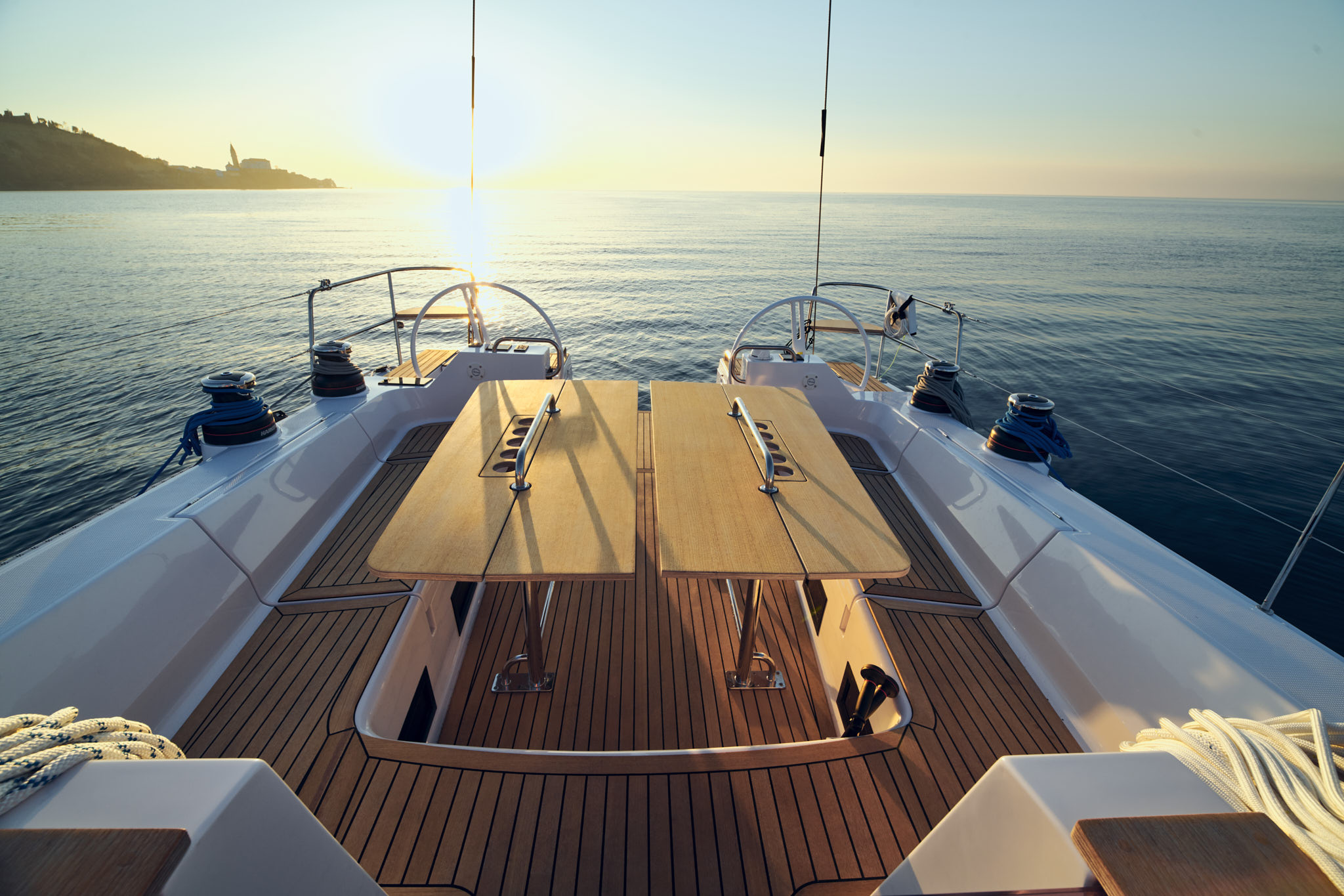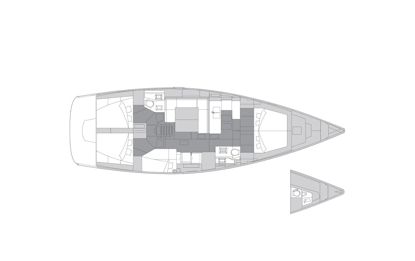The yacht’s level of comfort is made possible by its large volume, made even more friendly by the unique, gally-forward layout. The U-shaped cockpit seating, the forward galley, and a large sundeck are signature features of the yacht. The Impression 50.1’s twin wheel and rudder system ensures better control and handling even in the most extreme conditions.
