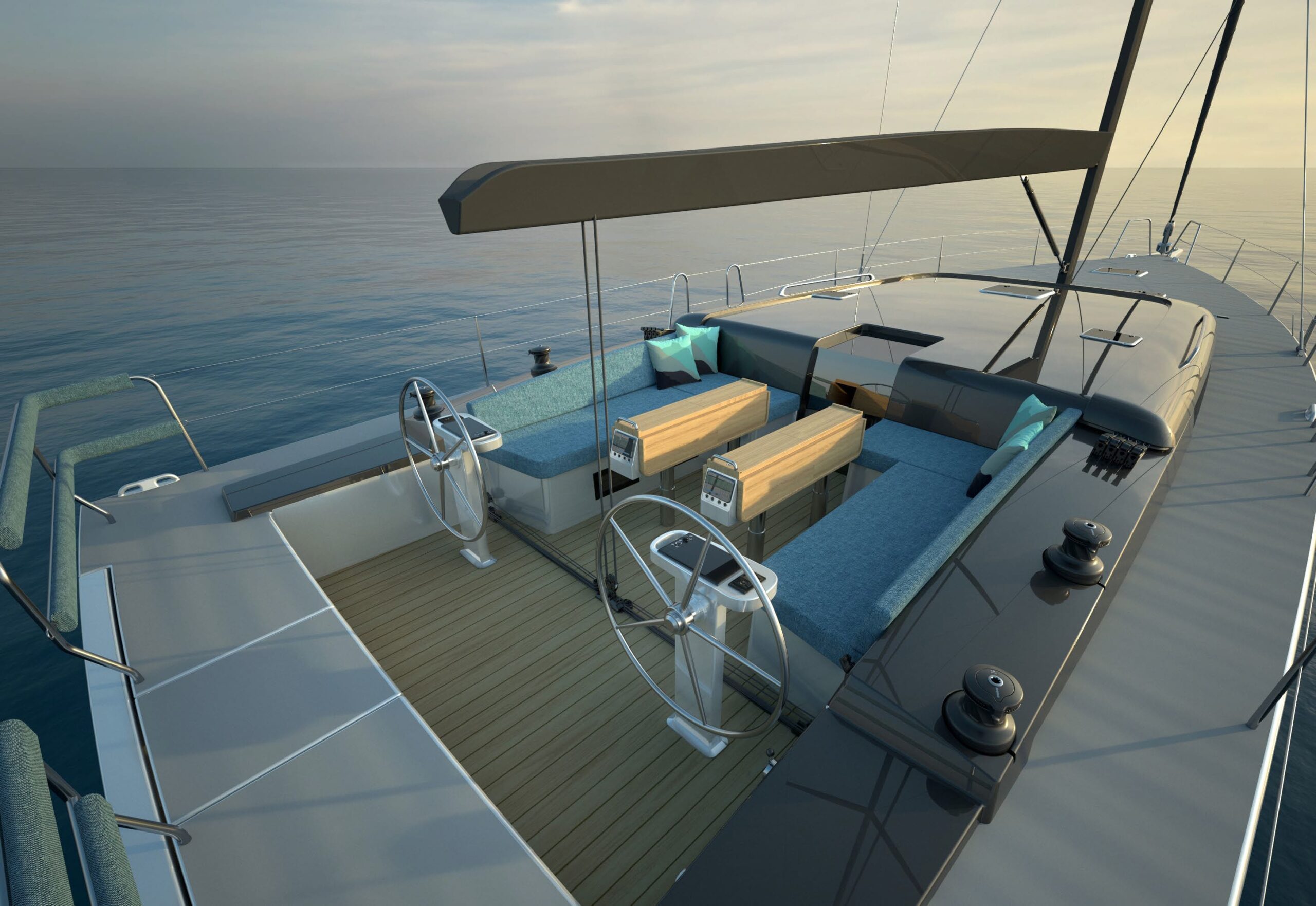 Performance & Ease: A secure, versatile cockpit designed for shorthanded sailing and entertaining at anchor.