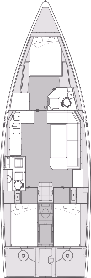 The hull and sail plan are optimized for easy short-handed sailing. Elan’s recognizable 3D VAIL composite technology creates a light, stiff and incredibly safe construction style. VAIL, or vacuum-assisted infusion lamination process creates a solid hull without imperfections or air bubbles, which, in combination with the vinyl ester outer layer makes the yacht osmosis-proof. The “3D” part of vacuum-assisted infusion lamination is applied to the vertical and lateral stringers, which ensures the best mechanical properties of the hull and rigging and is the secret behind Elan’s famed hull stiffness.