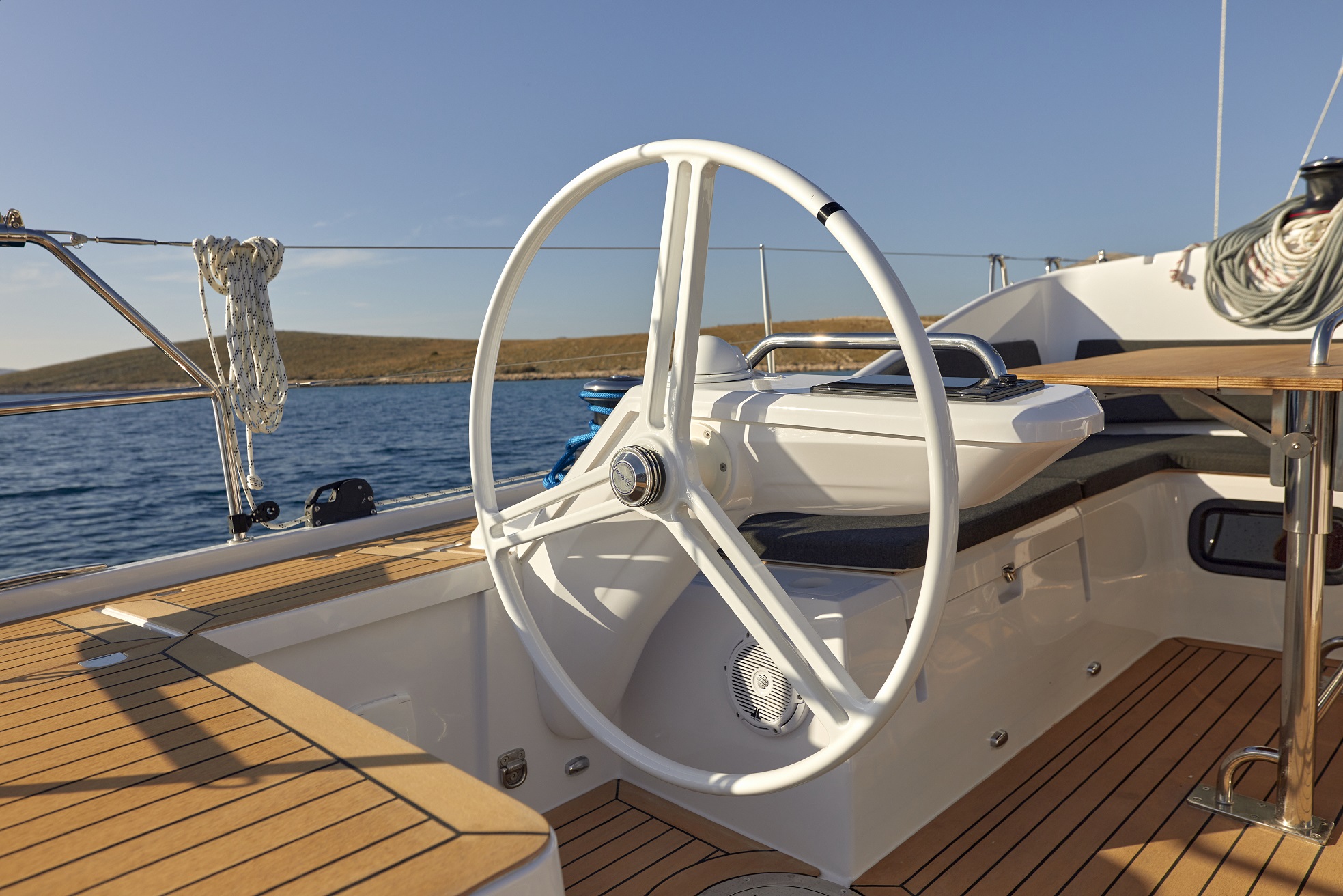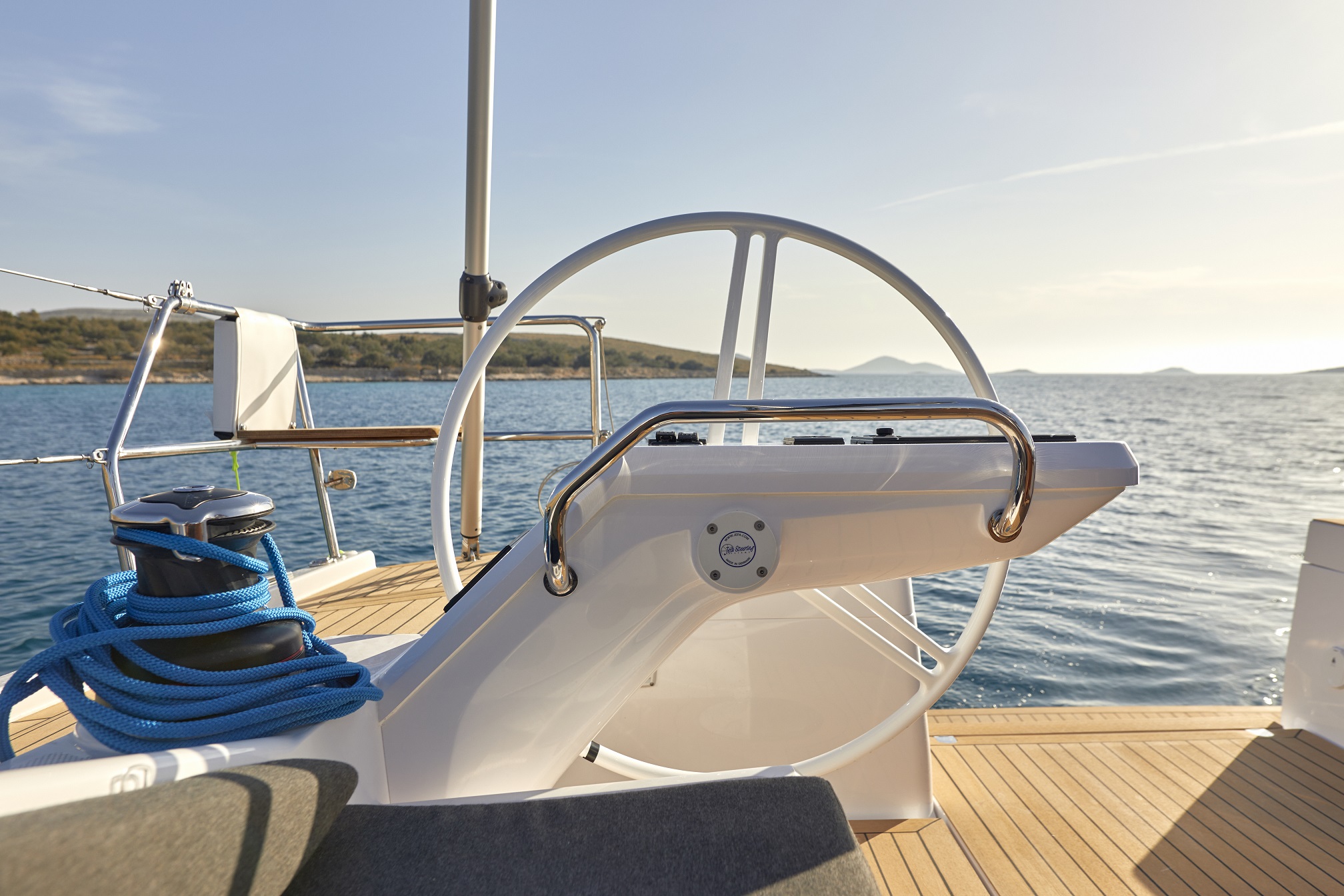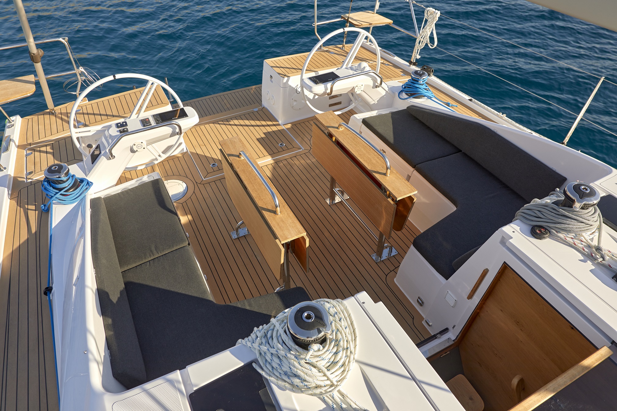 The yacht has a self-tacking jib in standard, but can also be upgraded to a genoa among other options.