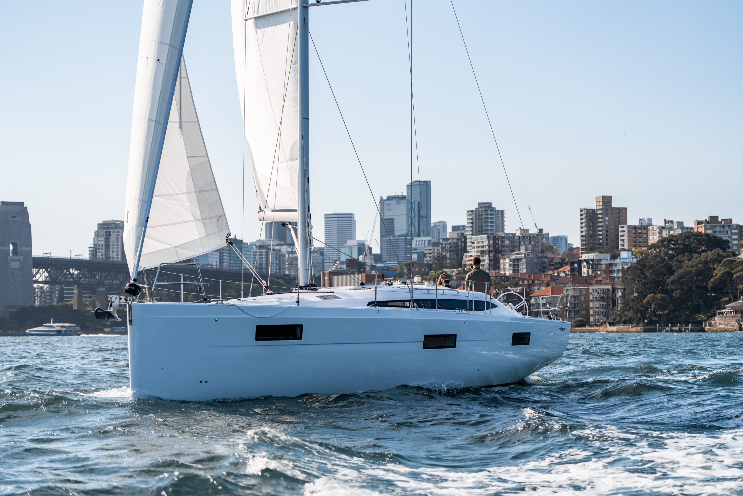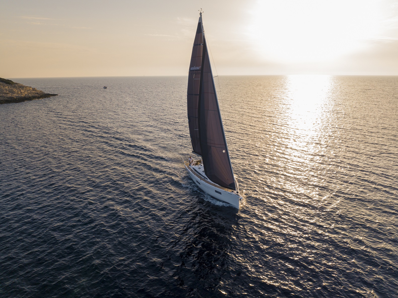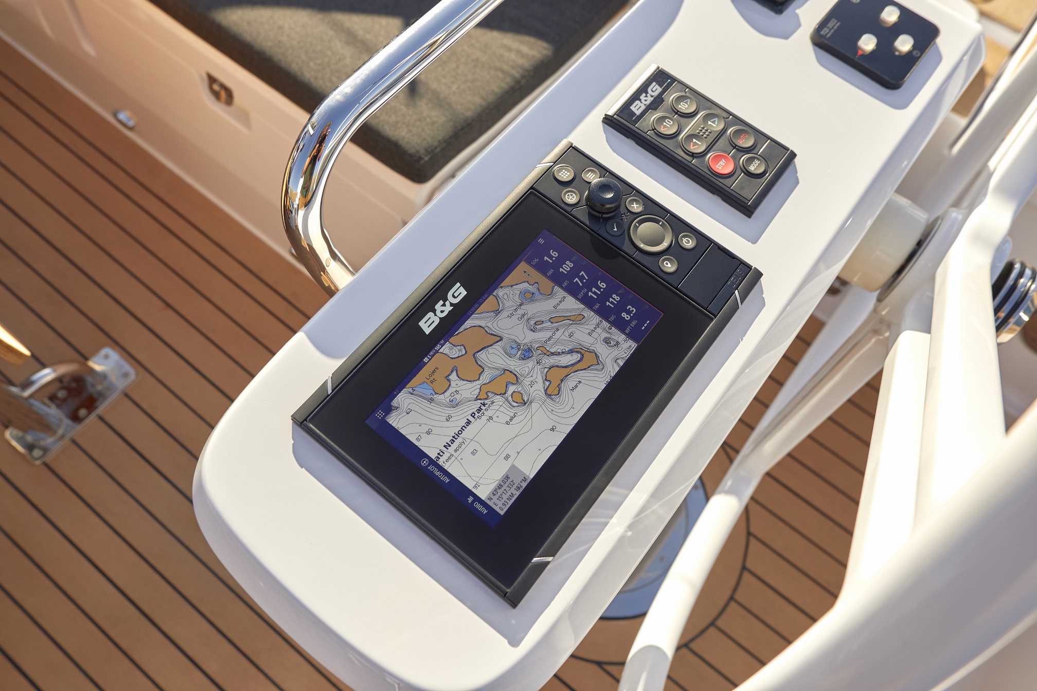 The yacht has a self-tacking jib in standard, but can also be upgraded to a genoa among other options.