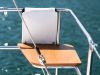 The saloon can comfortably seat the crew around a centre table, flanked by two solid wood chairs that fold in a pre-determined space when sailing. It can also be easily converted into a double berth.
