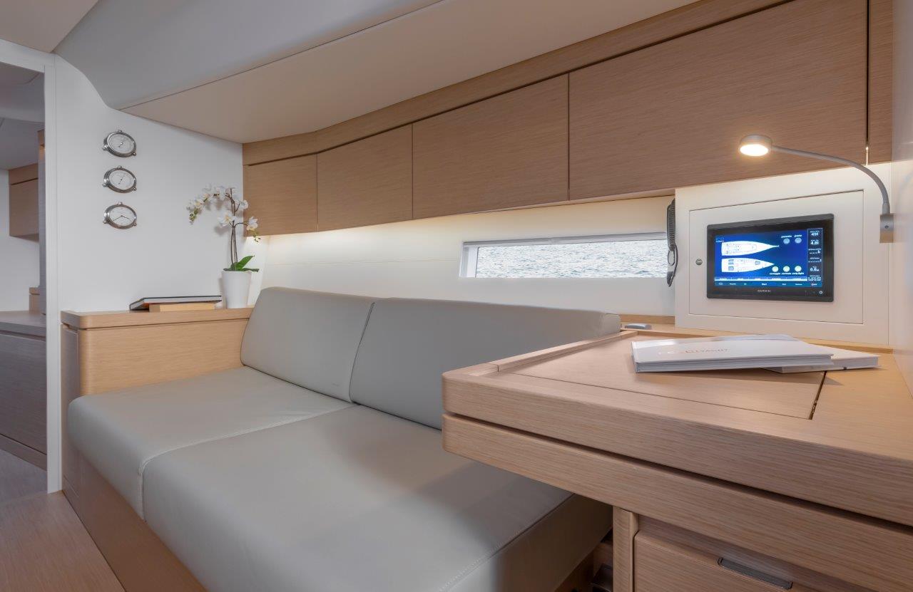 The cockpit is characterised by wide seats with comfortable backs. It’s a generously sized space that allows for a large table and comfortable dining or just for casual conversation over a fine Italian wine. The large side windows enhance the interaction with the outside, making the life aboard more pleasant and bright. The deck equipment, designed to be managed also by a small crew, doesn’t interfere with the boat comfort. The attention to detail of the finishes is impeccable.