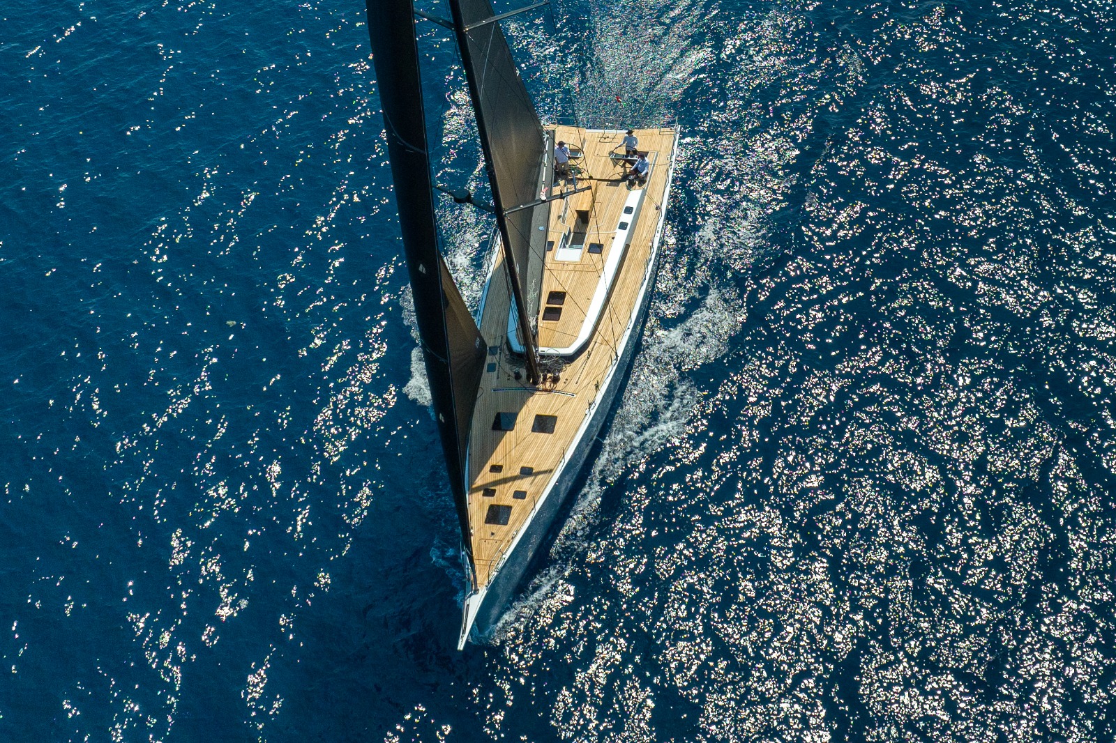 The rudder with shaft forged in autoclave at 7 bar and 145 degrees and carbon blade is studied and designed with cutting-edge technologies allows an impressive control even when the boat is heeling or subjected to heavy aerodynamic loads, always keeping clear the attention to safety, central to both design and construction. The deck is completely in carbon with one-step infusion and epoxy resin, specifically dedicated to sporty owners. This reflects the general lines of Felci Yacht Design projects, combining simplicity and style, elegance and efficiency, comfort and versatility. The cockpit, characterised by large benches and comfortable paramare backrests, is definitely oversize and allows maximum mobility for large crews.