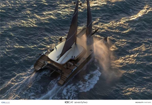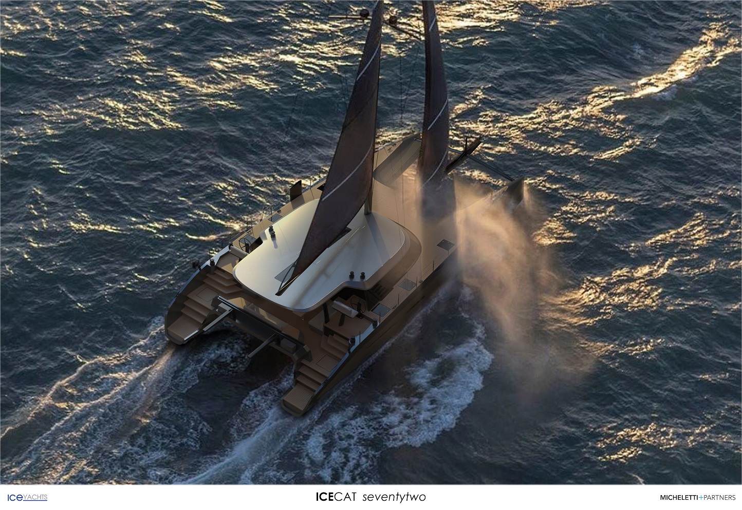 Ice Yachts raises the bar after the success of the award winning IceCat 67 with the development of a 72-foot super hi-tech catamaran created in collaboration with the design firm of the eclectic architect Lucio Micheletti.