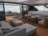 The internal layout has two accesses per hull to ensure maximum privacy and flexibility with life on board. The portside hull consists of a crew area aft with a private entrance, where there is a spacious cabin with head. From the second entrance forward, the spacious master guest cabin can be accessed, featuring a double bed and dedicated head. In the starboard hull, aft, there is the owner’s cabin with sleeping area, a very large and bright walk-in closet and a roomy head. There is a second guest cabin forward with bunk beds and head. The separation of the interior spaces has been designed to give guests a unique experience on board without compromising on comfort and functionality.