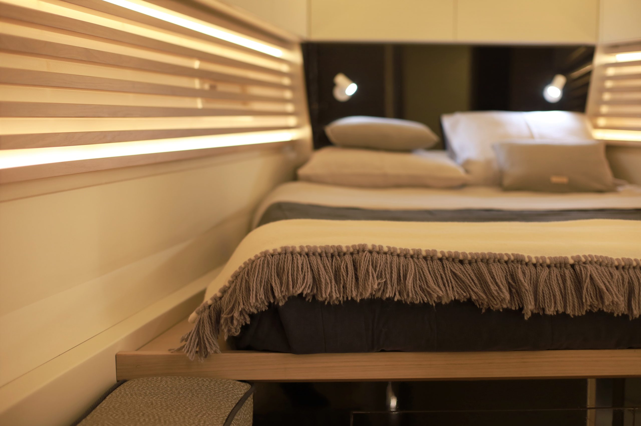 The IY 14.98 provides a comfortable and unique atmosphere, making you feel at home onboard. Its size makes it ideal for long cruises, and the interiors are designed with easy-living in mind, featuring special woods and textiles, ample and conformable spaces, and special features such as a wine cellar or high cabinets. The lighting is warm, suffused, and continuous, with a floor wash effect that is never invasive.