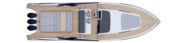 The cockpit, located under the hardtop, is modular and allows for the best configuration for your day on the water. The sofas are designed to leave the side walkways free, equipped with movable backrests and a central table that can be folded down to become a large sunpad. With the cockpit terraces open and the unobstructed stern, the space multiplies to become the central point of life aboard for children or a comfortable beach for guests on board.